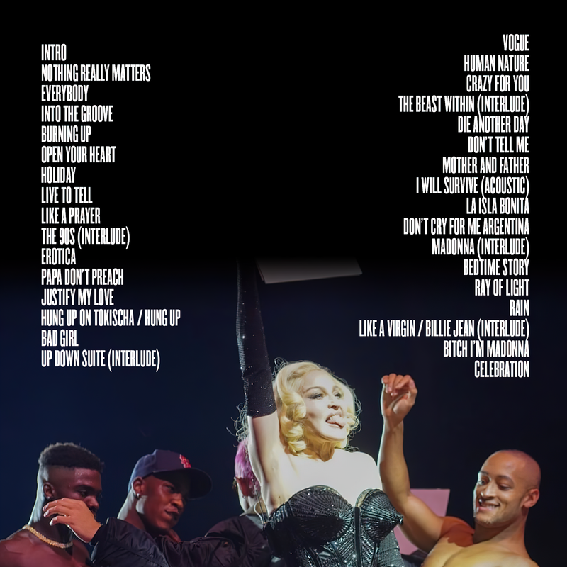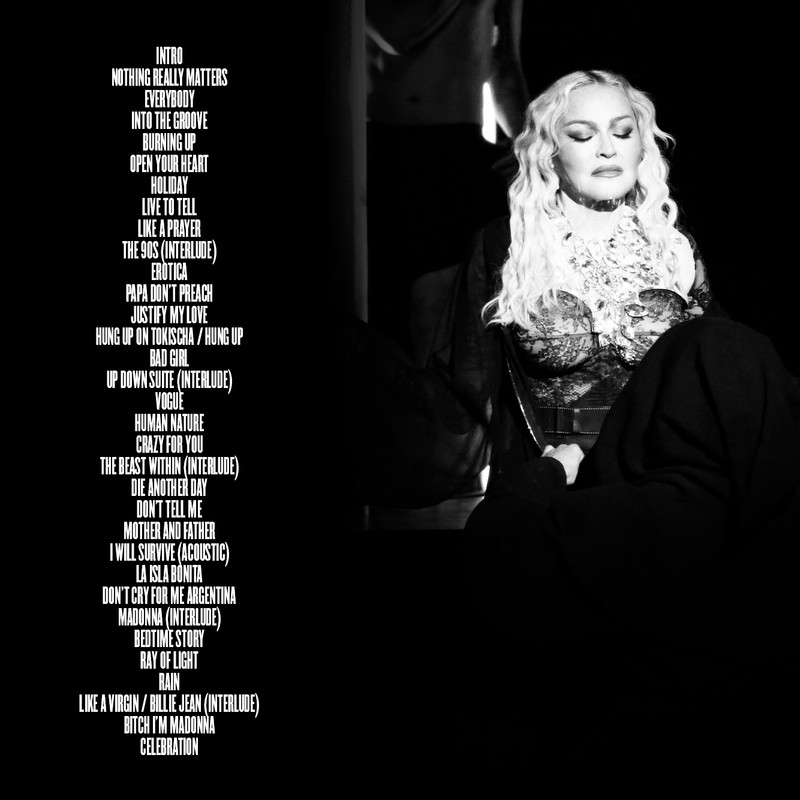 Ao longo do Show Madonna vai encantando todos os seus fãs, com cada performance, impossível não se emocionar ao vê Open Your Heart em sua versão original, Everybody, Holiday, dentre tantas outras, Bad Girl para mim, foi o ápice, junto a linda performance de Erotica com elementos de You Thrill Me, aquilo sim é uma apresentação digna de todos os aplausos, eu amei cada segundo daquele show, realmente a experiência de está ali é surreal, viajei do presente ao passado, passando por toda a trajetória da rainha.